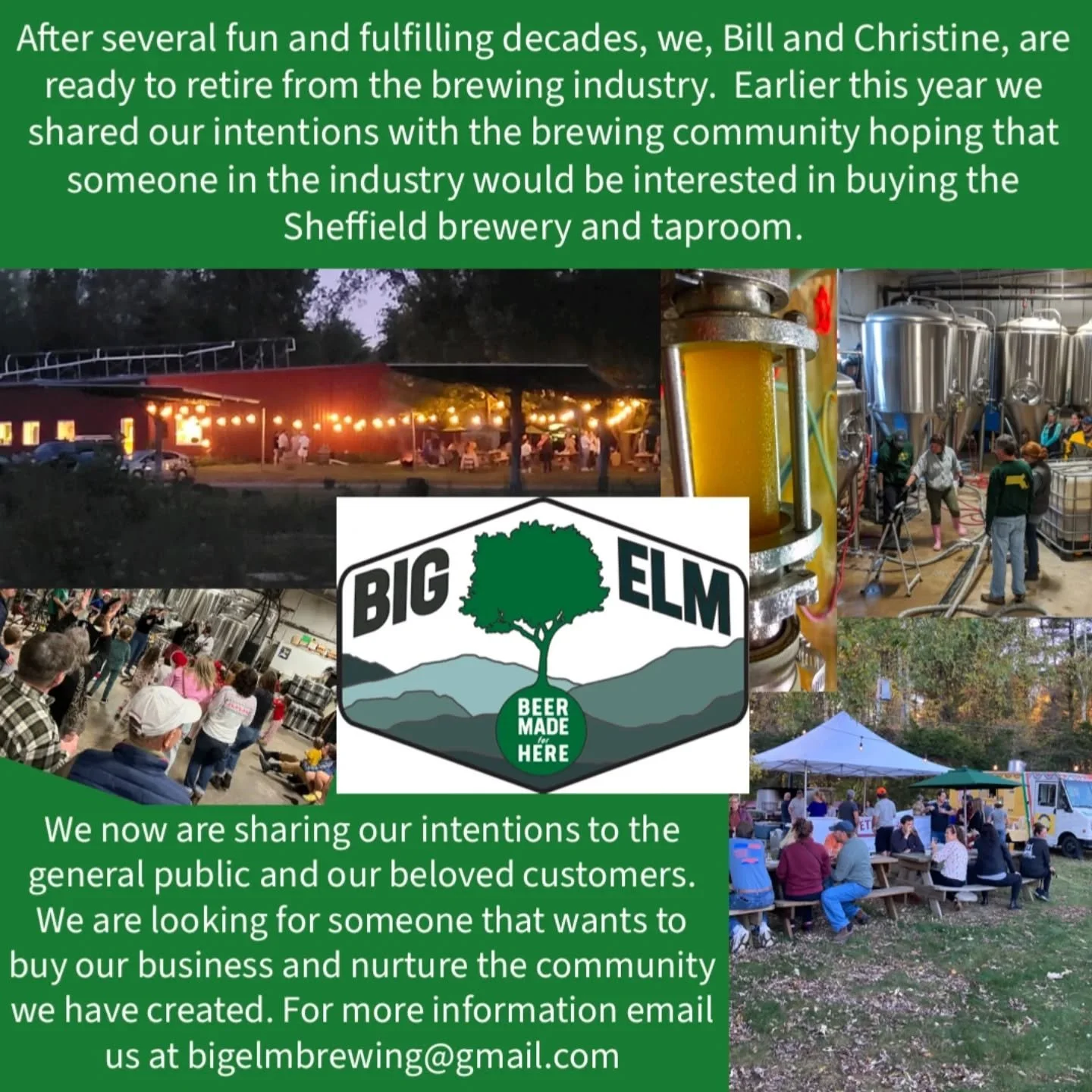 At the end of our street on the side of Route 7 there is a plaque that commemorates โThe Big Elm" of Sheffield. This is where the massive tree that gives us our name stood for almost 400 years. Before there was a town hall the people of Sheffield would meet under the tree which could give shade to hundreds. While the tree no longer stands, we hope to embody the spirit of what it meant by giving people something with which to gather around and enjoy each other's company.
